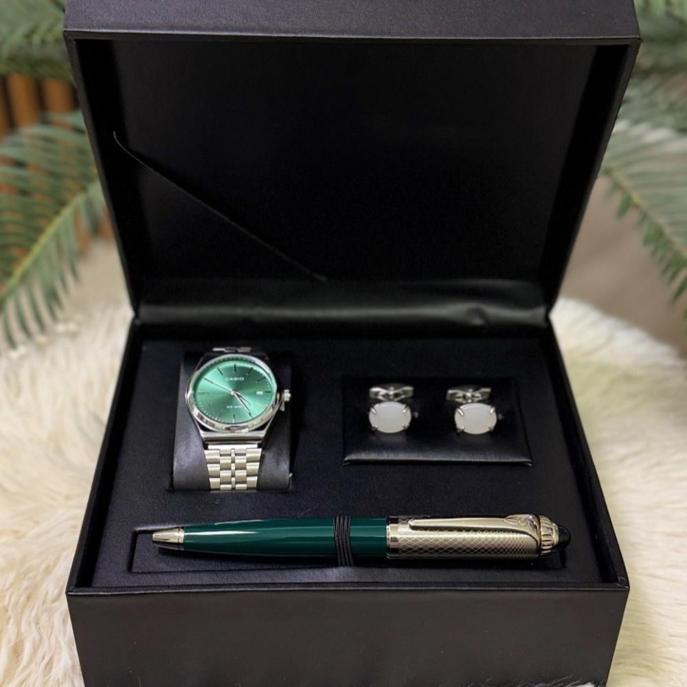 بكج عبارة عن ( ساعة كاسيو مع قلم وكبك)
